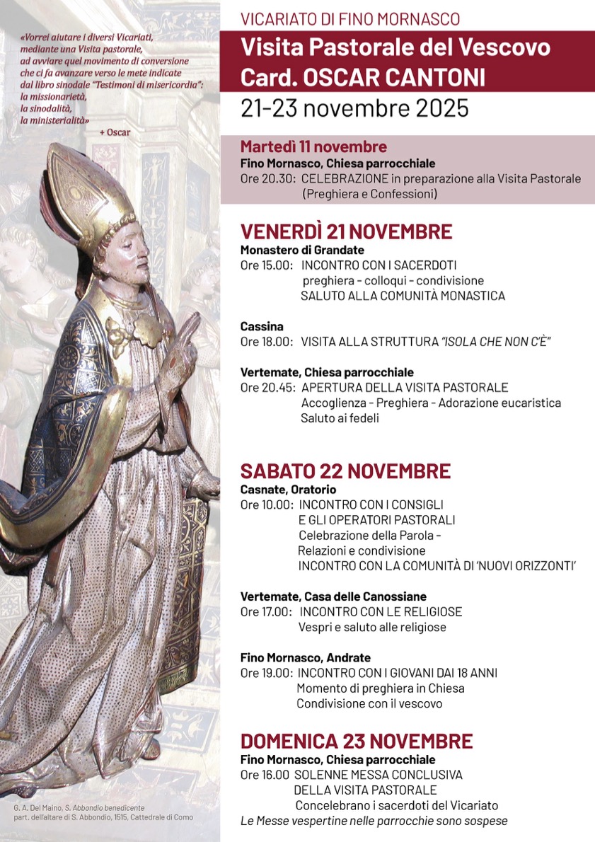Visita pastorale del vescovo 21-23 novembre 11 Novembre 2025 by elisabetta Di seguito locandina con il programma della visita nel vicariato di Fino Mornasco del vescovo Oscar Cantoni.